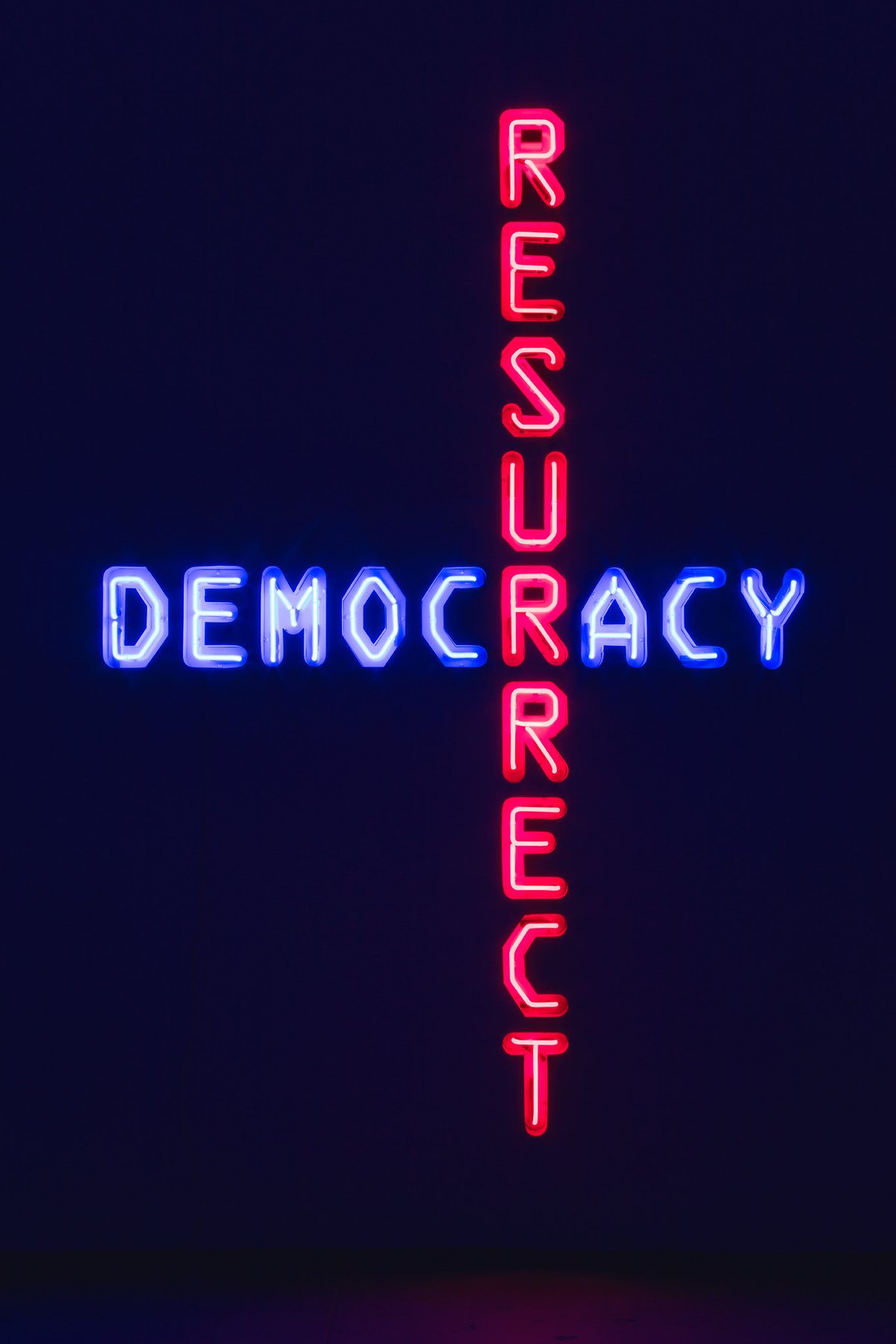 Maynard Monrow, Resurrect Democracy, Neon light installation
