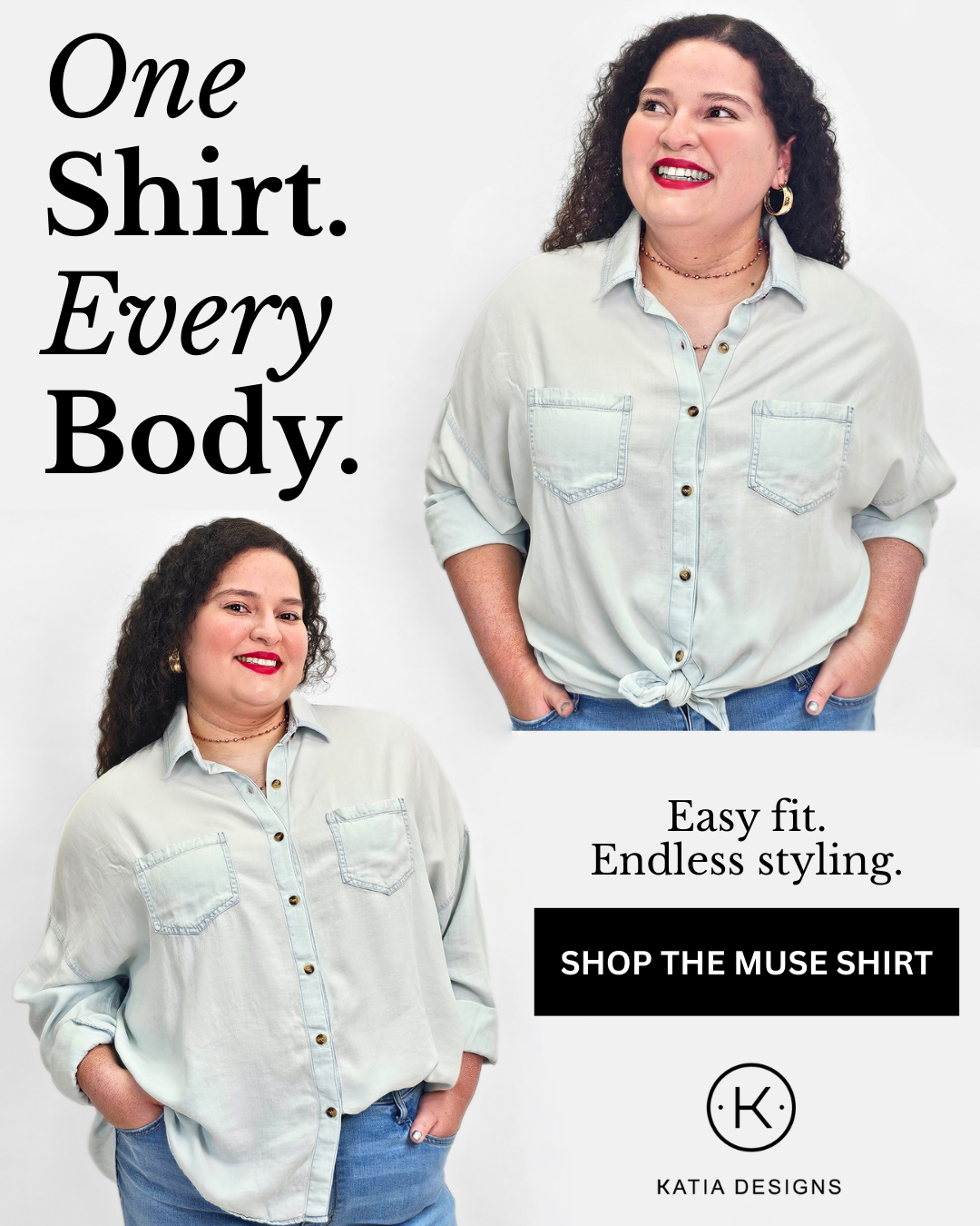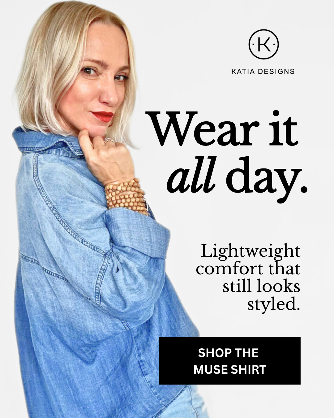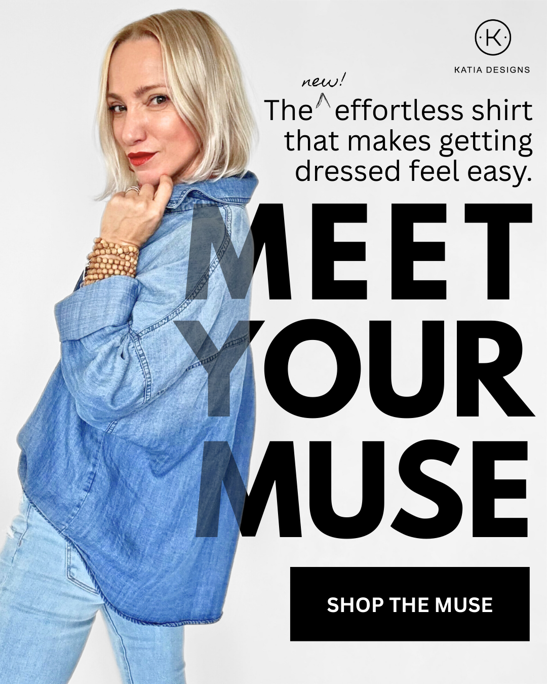 The Muse Shirt hard launch campaign, Spring 2026. © Katia Designs, LLC.