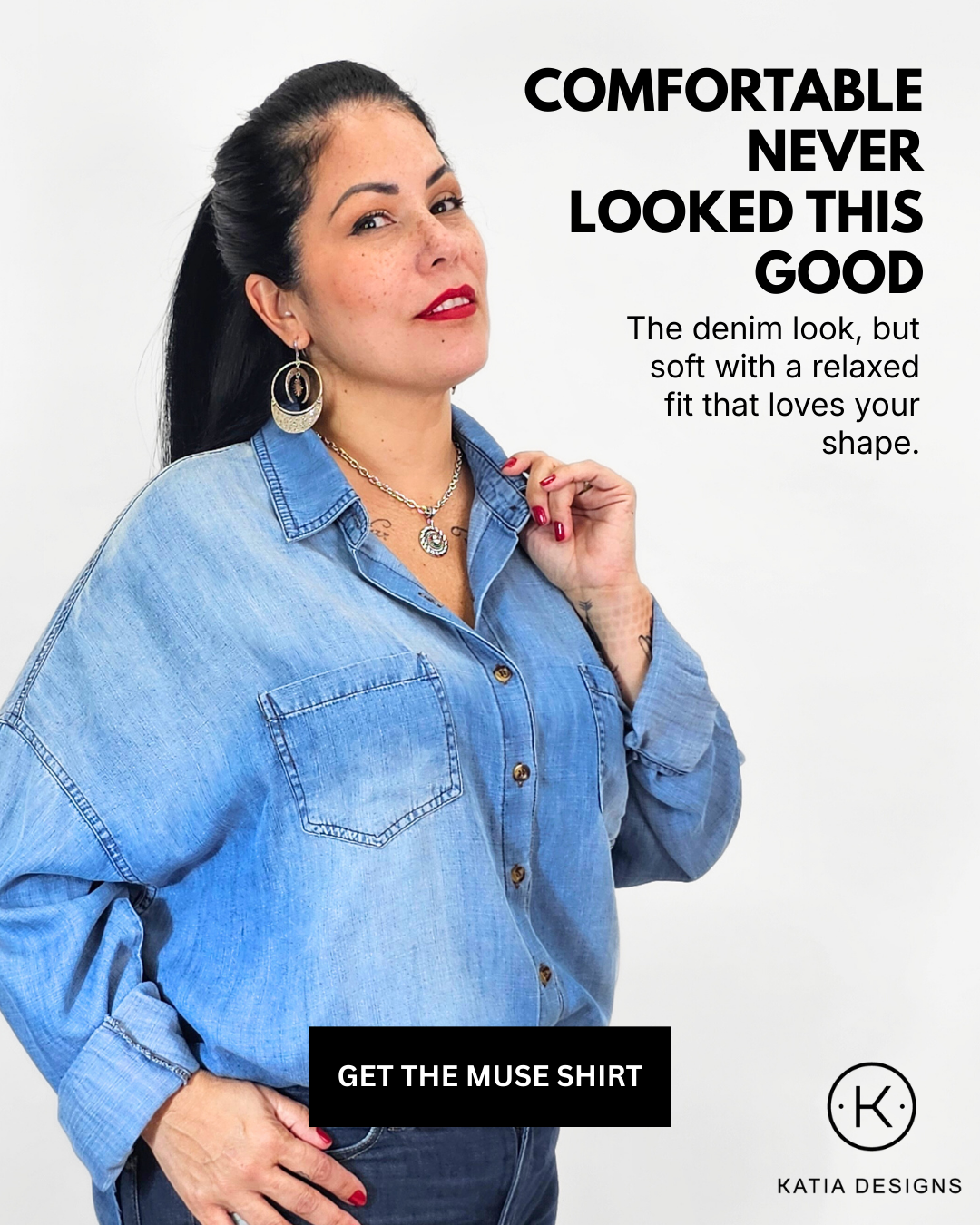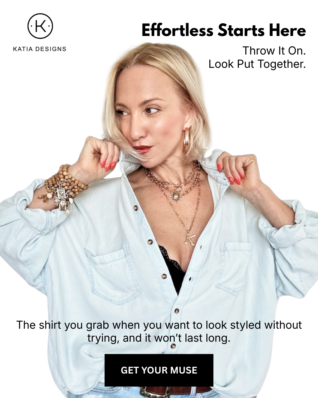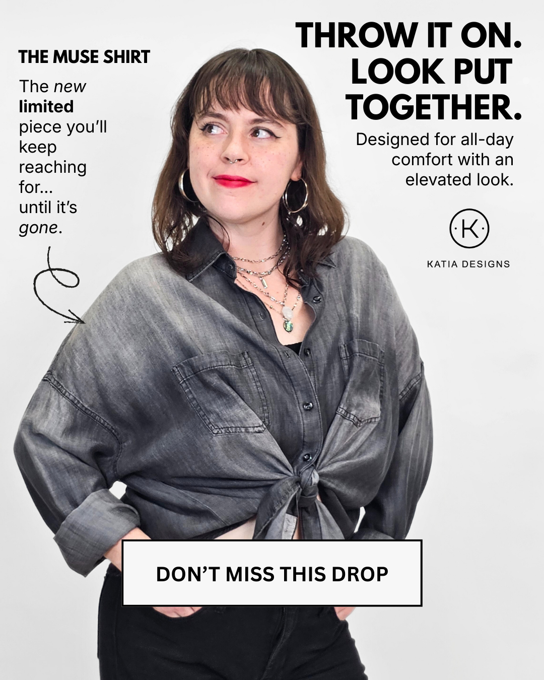 The Muse Shirt hard launch campaign, Spring 2026. © Katia Designs, LLC.